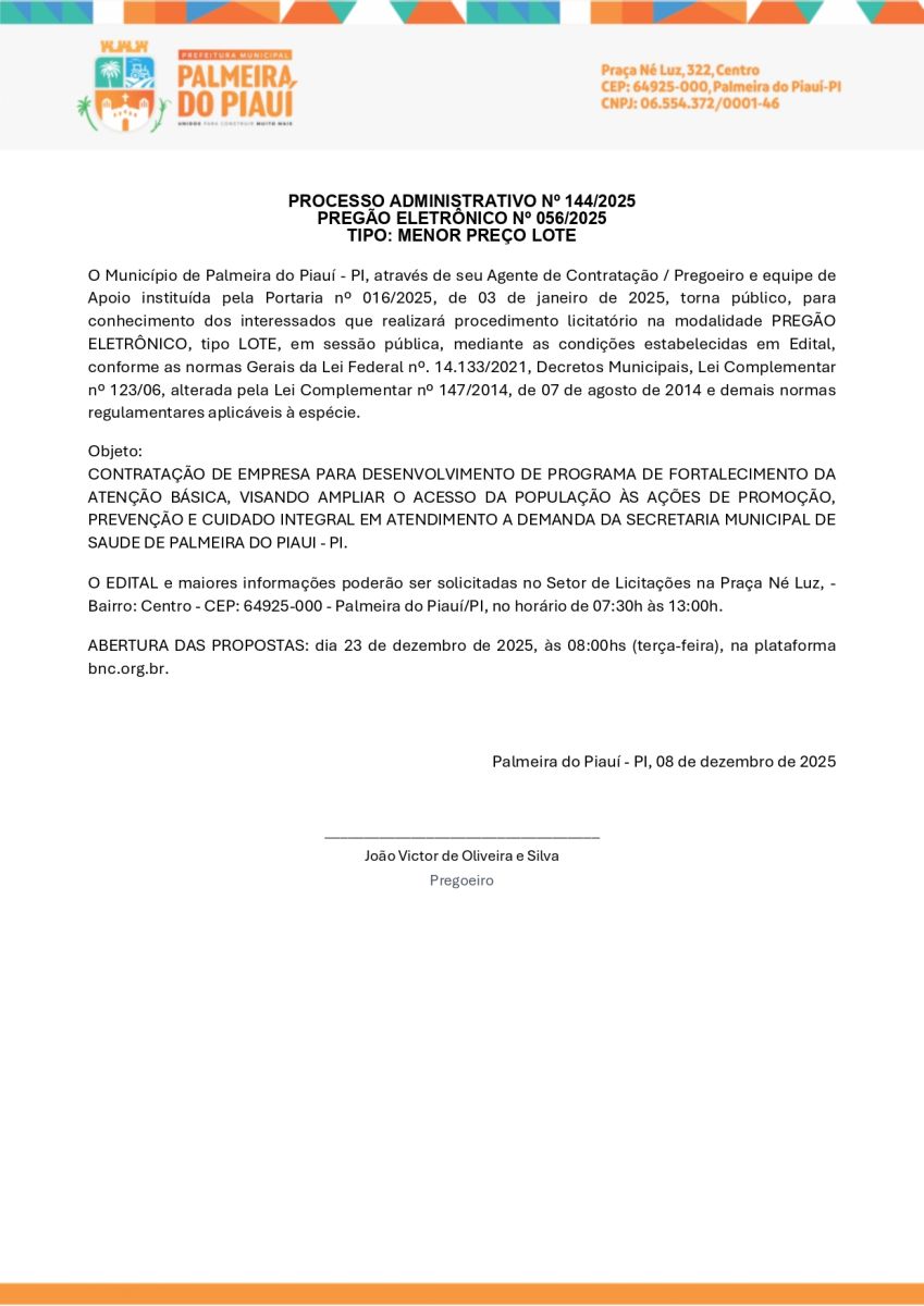 AVISO DE PREGÃO ELETRÔNICO N° 056/2025