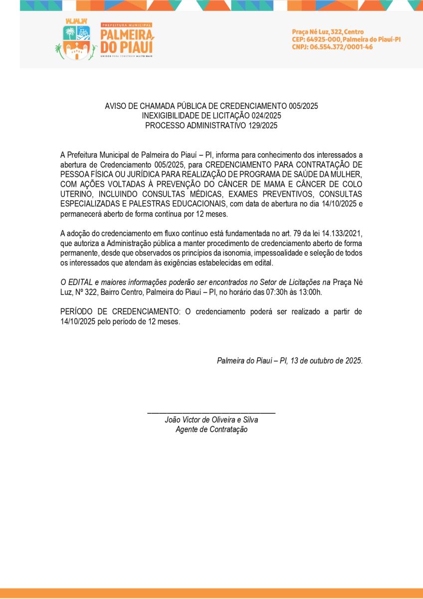 AVISO DE CHAMADA PÚBLICA DE CREDENCIAMENTO 005/2025