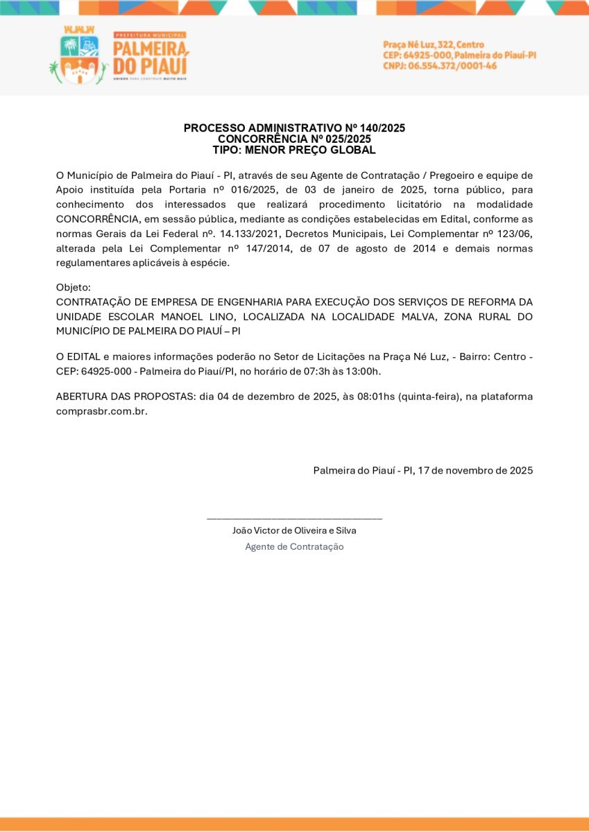 AVISO DE CONCORRÊNCIA Nº 025/2025